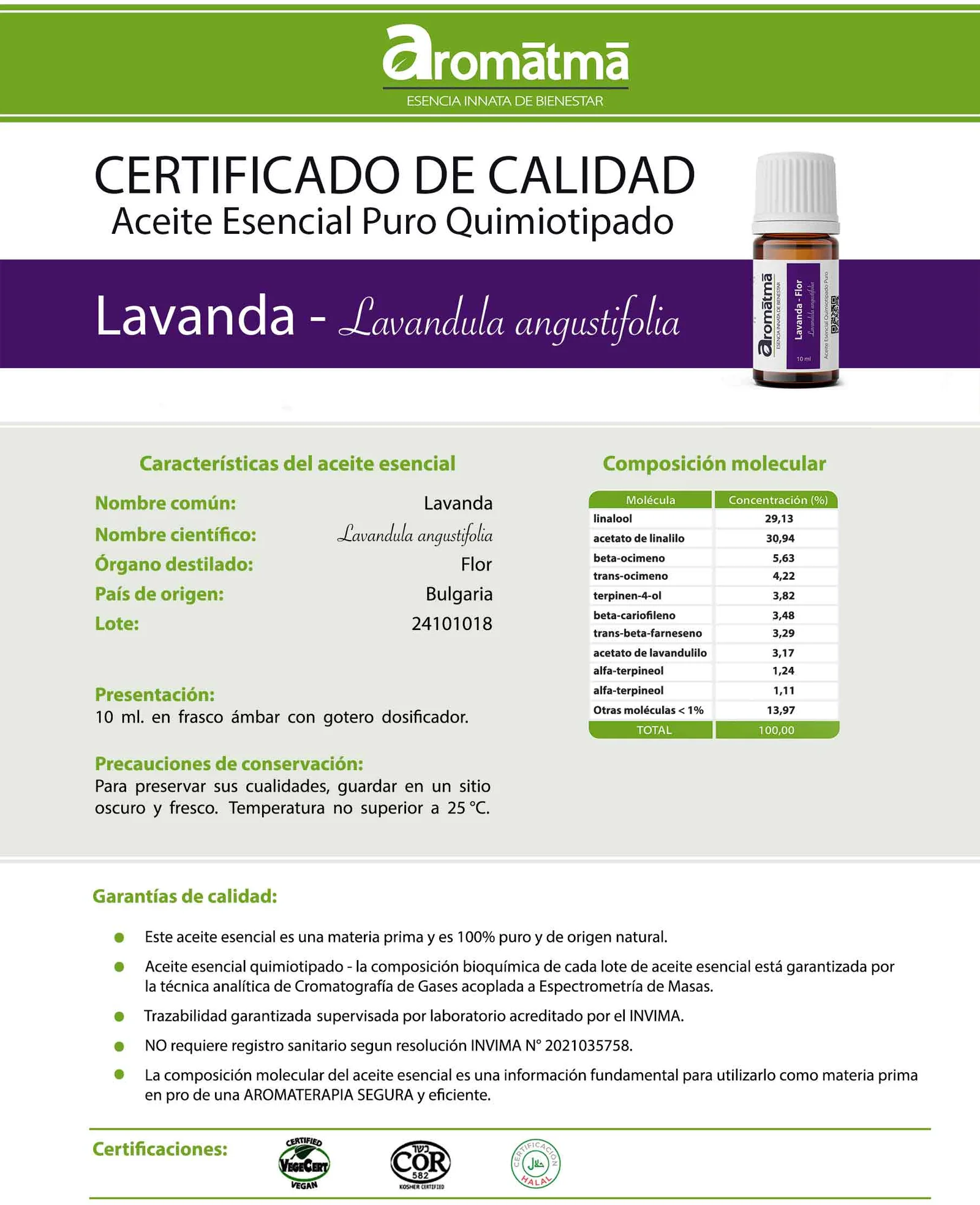Garantía de Calidad: Los aceites esenciales cuentan con una certificación de no obligatoriedad de Registro Sanitario otorgado por el INVIMA según resolución 2021035758.